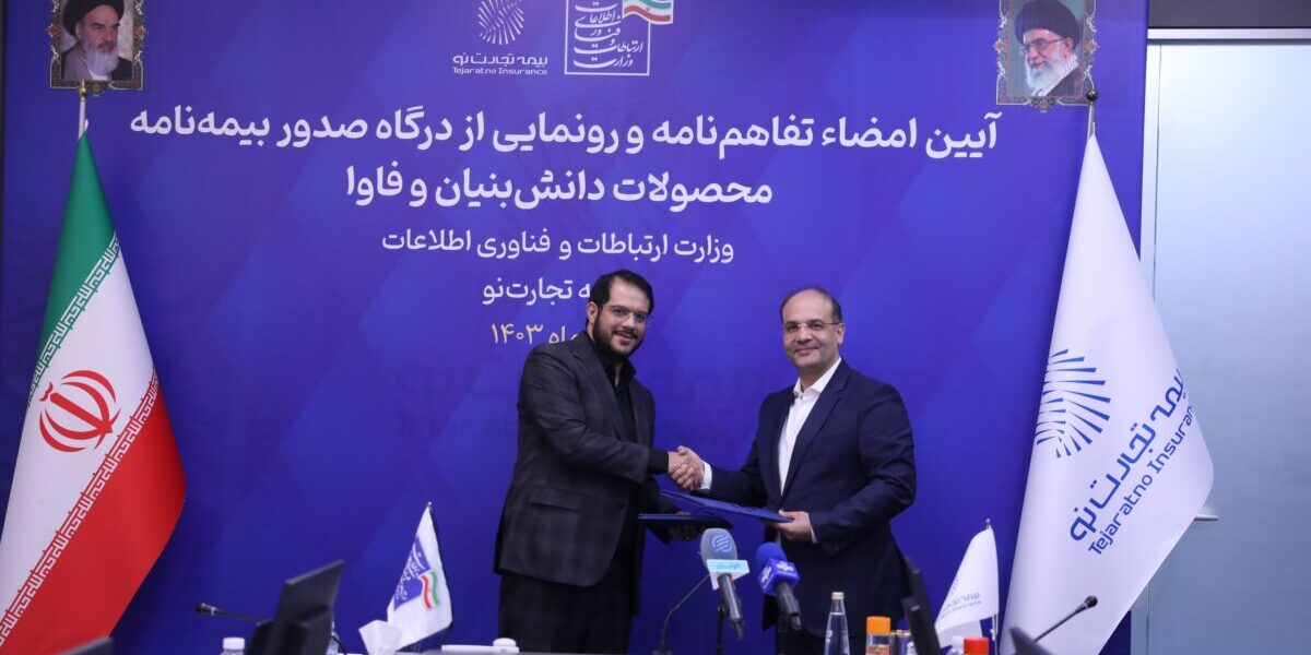 تفاهمنامه همکاری میان بیمه تجارتنو و وزارت ارتباطات و فناوری اطلاعات با هدف ارائه بیمهنامه برای محصولات دانشبنیان و حوزه فاوا، برای نخستینبار در صنعت بیمه به امضا رسید